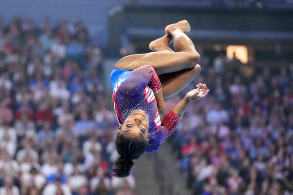 Simone Biles competes in the floor exercise at the United States Gymnastics Olympic Trials on June 30, in Minneapolis.Charlie Riedel/The Associated Press