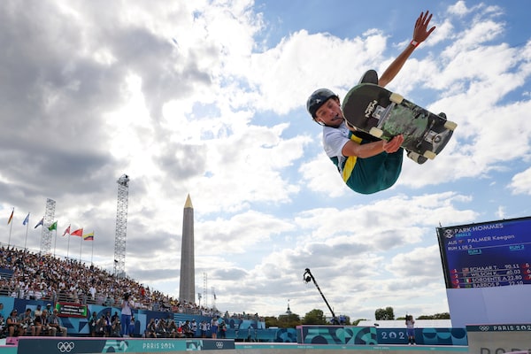 Australia's Keegan Palmer competes in the men's park skateboarding final during the Summer Olympics in Paris, France, on Aug. 7, 2024.Odd Andersen/The Associated Press