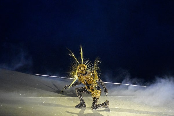 A costumed figure performs in the closing ceremony of the Paris Olympic Games.WANG ZHAO/Getty Images