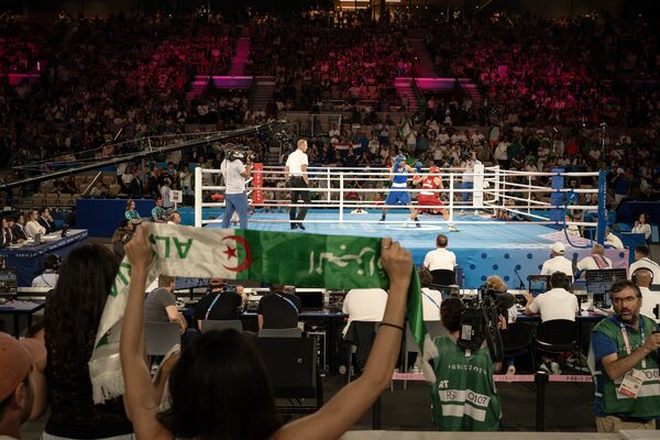 Ms. Khelif’s semi-final fight against Thailand’s Janjaem Suwannapheng on Tuesday drew thousands of fans carrying Algerian flags and shouting “Imane! Imane!” Before the fight, her supporters gathered in groups outside the famous home of the French Open tennis tournament, and chanted, “One, two, three, Algérie!”