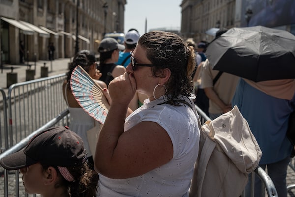 A woman fans herself as she waits with her children in Paris during the 2024 Olympic Games.Siegfried Modola/The Globe and Mail