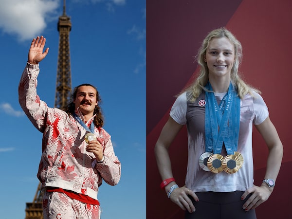 Canadian Olympic athletes Ethan Katzberg (left) and Summer McIntosh have been selected to be the country's flagbearers in the Paris Olympics closing ceremony.Siegfried Moldola/The Globe and Mail