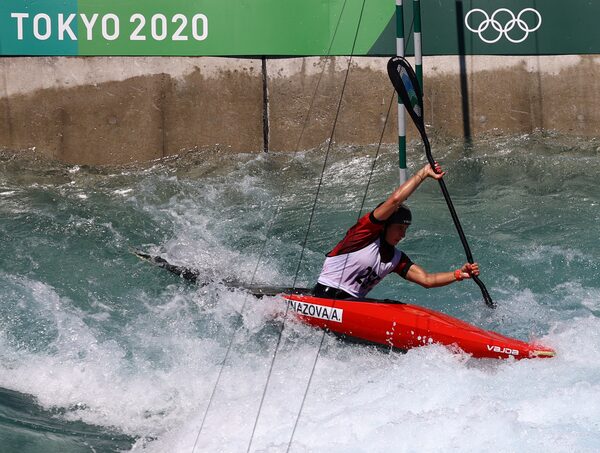 Alsu Minazova of Russia trains at the Tokyo 2020 Olympic Kasai Canoe Slalom Centre in Japan, July 17, 2021.EDGAR SU/Reuters