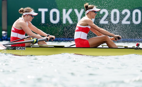 Canada's Caileigh Filmer and Hillary Janssens compete in the women's pair rowing final event during the Tokyo Summer Olympic Games.Nathan Denette/The Canadian Press