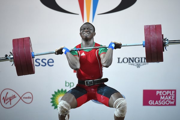 Cyrille Tchatchet II competes for Cameroon in the men's 85 kg weightlifting at the Glasgow 2014 Commonwealth Games.Jeff J Mitchell/Getty Images