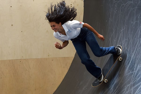 Madeleine Larcheron, who will skateboard for France at the Olympics, skates at a park in Biarritz, France, this past June.GAIZKA IROZ/AFP via Getty Images