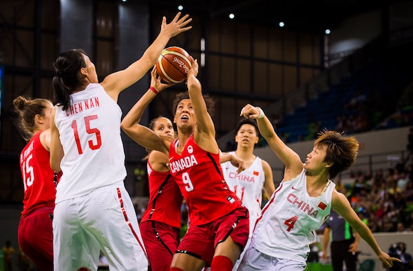 Canadian Miranda Ayim battles through Team China at the Rio de Janeiro Olympics in 2016.John Lehmann/The Globe and Mail