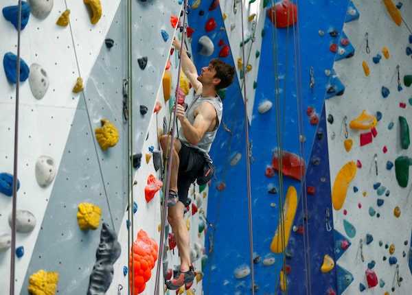 Sport climber Jan Hojer, who will compete at the Olympics, trains in a climbing hall in Hilden, Germany, this past June.Thilo Schmuelgen/Reuters