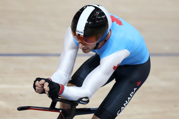 Canadian Tristen Chernove competes in the track cycling men's C1 3,000m individual pursuit gold-medal race at the Tokyo Paralympics on Aug. 26, 2021.Kiyoshi Ota/Getty Images