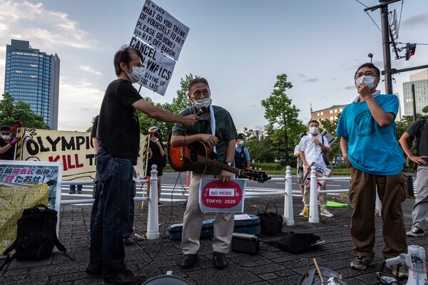 People demonstrate against the forthcoming Tokyo Olympic Games on July 18, 2021 in Tokyo.Yuichi Yamazaki/Getty Images
