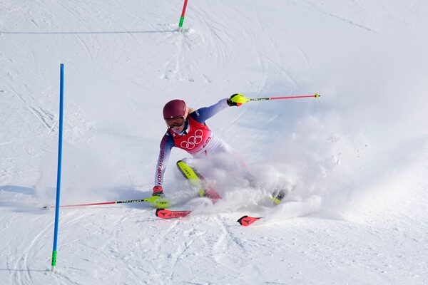 Shiffrin in action at the slalom event. 'I’m not going to cry about this, because that’s just wasting energy,' she said of her performance.Robert F. Bukaty/The Associated Press