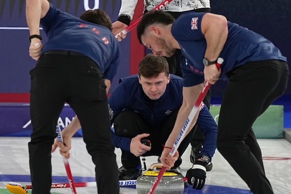 Britain's Bruce Mouat, Grant Hardie and Hammy McMillan compete against Switzerland on Thursday.Fatima Shbair/The Associated Press