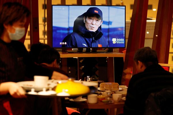 A screen at a restaurant in Beijing shows Chinese film director Zhang Yimou, who is overseeing the opening and closing ceremonies of the 2022 Winter Olympics.FLORENCE LO/Reuters