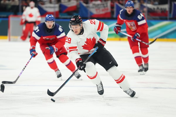 About midway through Canada’s opening game at the Olympics, Mitch Marner lifted a backhand saucer pass over a sprawling Czech defender, leaving Mark Stone with a wide-open net.
