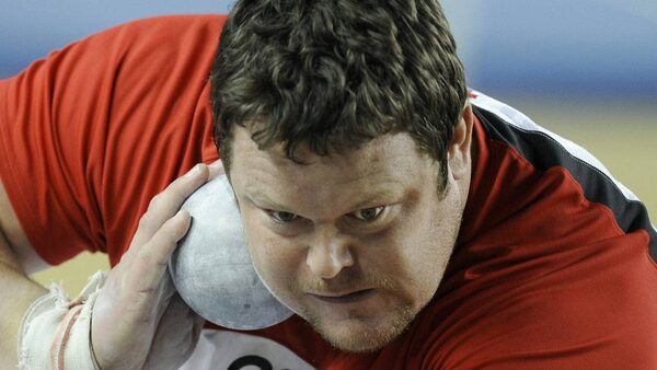 Canada's Dylan Armstrong makes an attempt at the Men's Shot Put qualification during the World Indoor Athletics Championships in Istanbul, Turkey, Friday, March 9, 2012. (AP Photo/Martin Meissner)Martin Meissner/The Associated Press