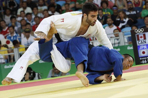 Japan's Masashi Ebinuma (blue) competes with Canada's Antoine Bouchard during their men's 66-kilogram judo contest bronze medal B match of the Rio 2016 Olympic Games in Rio de Janeiro on August 7, 2016.JACK GUEZ/AFP / Getty Images