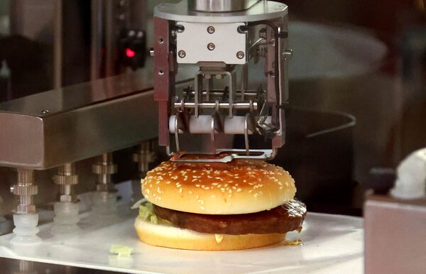 A robotic cooking machine making a beef burger is pictured at the dining hall at the Main Press Centre ahead of the Beijing 2022 Winter Olympics.FABRIZIO BENSCH/Reuters
