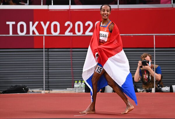 Sifan Hassan of the Netherlands celebrates after winning gold in the 10000-metre final at the Tokyo Olympics.DYLAN MARTINEZ/Reuters