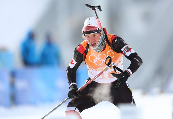 Canada's Scott Gow competes during men's biathlon 4x7. 5km relay at the Beijing Winter Olympics.Ezra Shaw/Getty Images AsiaPac