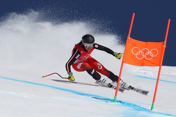 Marie-Michèle Gagnon, of Canada makes a turn during the women's downhill at the Beijing Winter Olympics. Gagnon finished in eighth place.Alessandro Trovati/The Associated Press