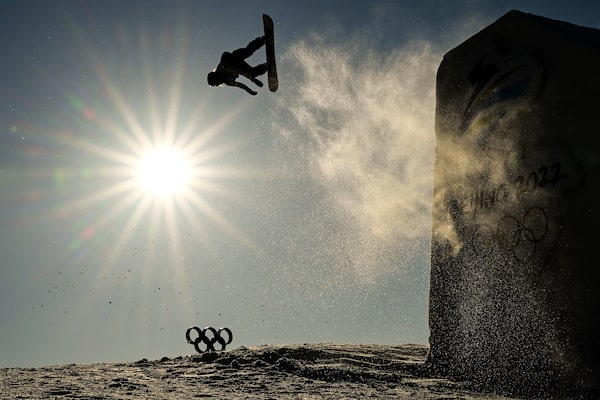 Laurie Blouin of Canada competes during the women's snowboard big air qualifications of the Beijing Winter Olympics.Jae C. Hong/The Associated Press