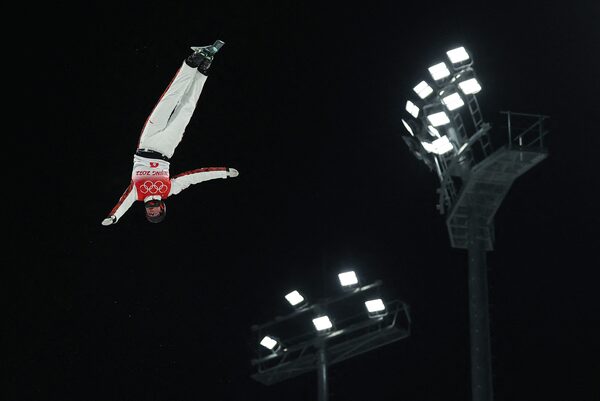 Marion Thenault of Canada on her first jump in the women's freestyle skiing aerials finals at the Beijing Winter Olympics, in Zhangjiakou, China.LINDSEY WASSON/Reuters
