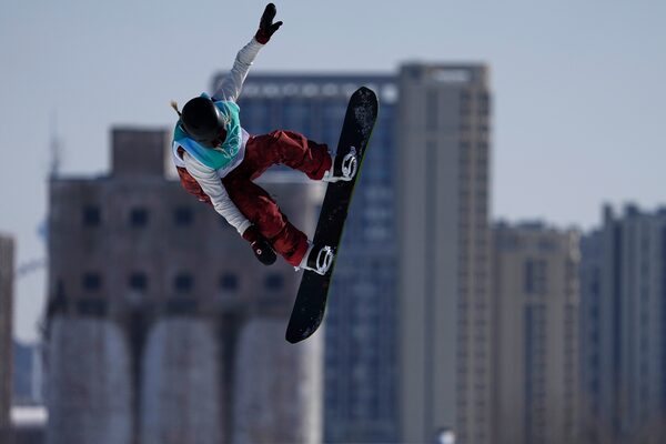 Canada's Laurie Blouin competes in the snowboard women's big air qualification run during the Beijing Winter Olympic Games at the Big Air Shougang.KIRILL KUDRYAVTSEV/AFP