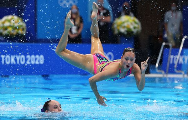 Canada's artistic swimming team competes during the team technical routine at the Tokyo Summer Olympics.MARKO DJURICA/Reuters