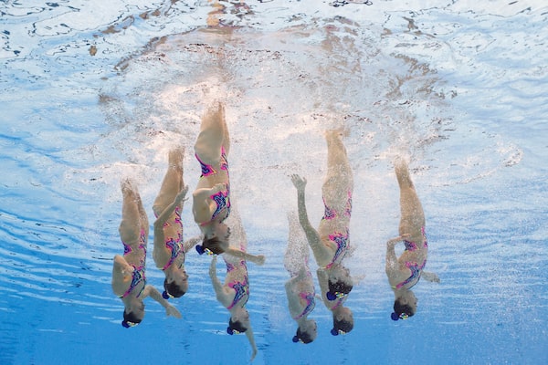 Canada's artistic swimming team competes during the team technical routine at the Tokyo Summer Olympics.STEFAN WERMUTH/Reuters