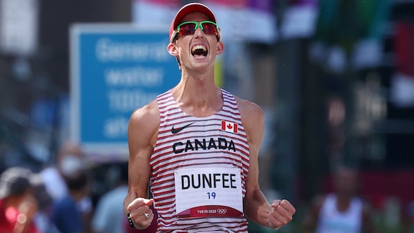 Canada’s Evan Dunfee claimed bronze in the men’s 50-kilometre race walk, the first medal won by Canada in the event.FELINE LIM/Reuters