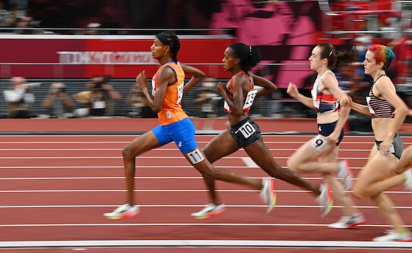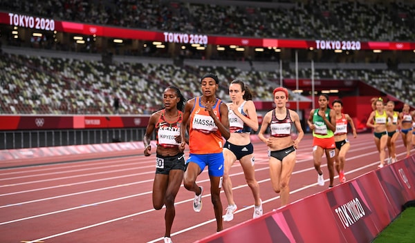 Sifan Hassan of the Netherlands, Faith Kipyegon of Kenya, Laura Muir of Britain and Gabriela Debues-Stafford of Canada in the women's 1500m race at the Tokyo Olympics.DYLAN MARTINEZ/Reuters