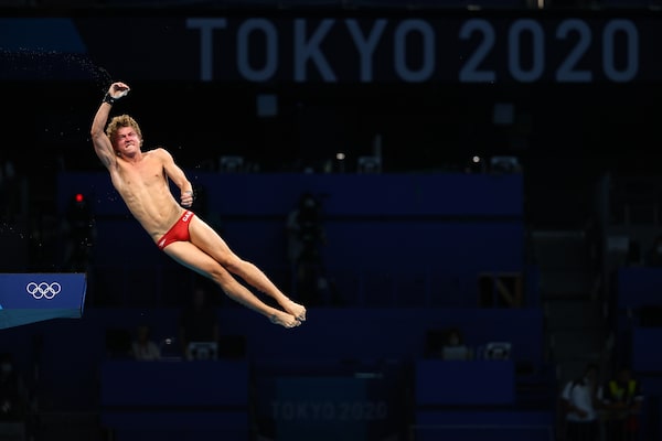 Rylan Wiens of Canada competes in men's diving 10m platform preliminary at the Tokyo Aquatics Centre at the Tokyo Summer Olympics.ANTONIO BRONIC/Reuters