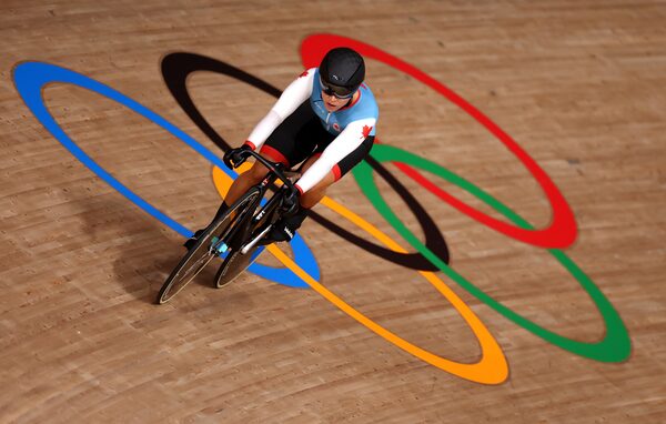 Lauriane Genest of Canada during the Women's sprint heat 5 of the track cycling at the Tokyo Olympic Games at Izu Velodrome.CHRISTIAN HARTMANN/Reuters