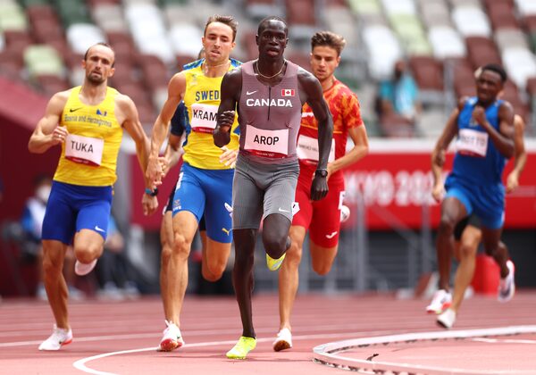 Canada's Marco Arop, Amel Tuka of Bosnia, Andreas Kramer of Sweden in action during heat 2 of the men's 800m race.ANDREW BOYERS/Reuters