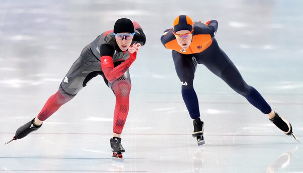 Canada's Ivanie Blondin and Ireen Wust of the Netherlands during the Women's 1500m speed skating event at the Beijing Winter Olympics.EVELYN HOCKSTEIN/Reuters
