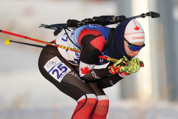 Megan Bankes of Canada in action during the Women's Biathlon 15km Individual race at the Beijing Winter Olympics.ATHIT PERAWONGMETHA/Reuters