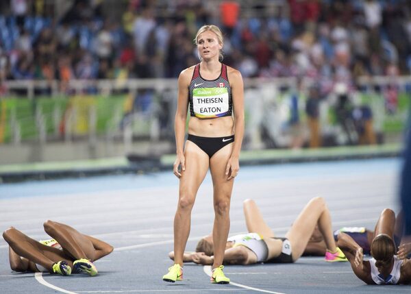 Canada's bronze medal winner Brianne Theisen Eaton catches her breath after the 800-metre of the heptathlon at the 2016 Summer Olympics on August 13 in Rio de Janeiro, Brazil.Ryan Remiorz/The Canadian Press