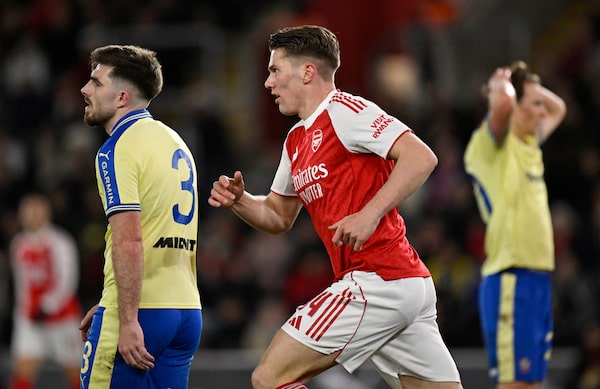 Arsenal's manager Mikel Arteta reacts during his team's English FA Cup quater-final soccer match against Southampton in Southampton, England on Saturday.Dave Shopland/The Associated Press
