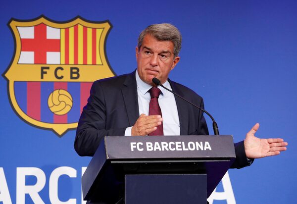 Barcelona president Joan Laporta during a press conference.ALBERT GEA/Reuters