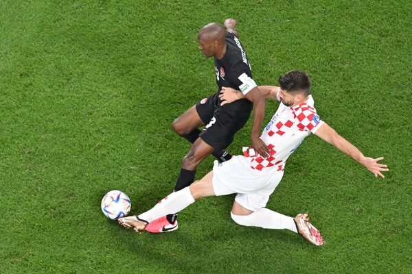 Canada's midfielder #13 Atiba Hutchinson (L) fights for the ball with Croatia's forward #16 Bruno Petkovic during the Qatar 2022 World Cup Group F football match between Croatia and Canada at the Khalifa International Stadium in Doha on Nov. 27.ANTONIN THUILLIER/AFP/Getty Images