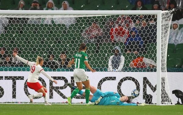 It’s a nightmare start for Canada. Just four minutes in, Katie McCabe fires a corner kick directly into the Canadian net – an olimpico, as such goals are called – to score Ireland’s first-ever goal at a World Cup.