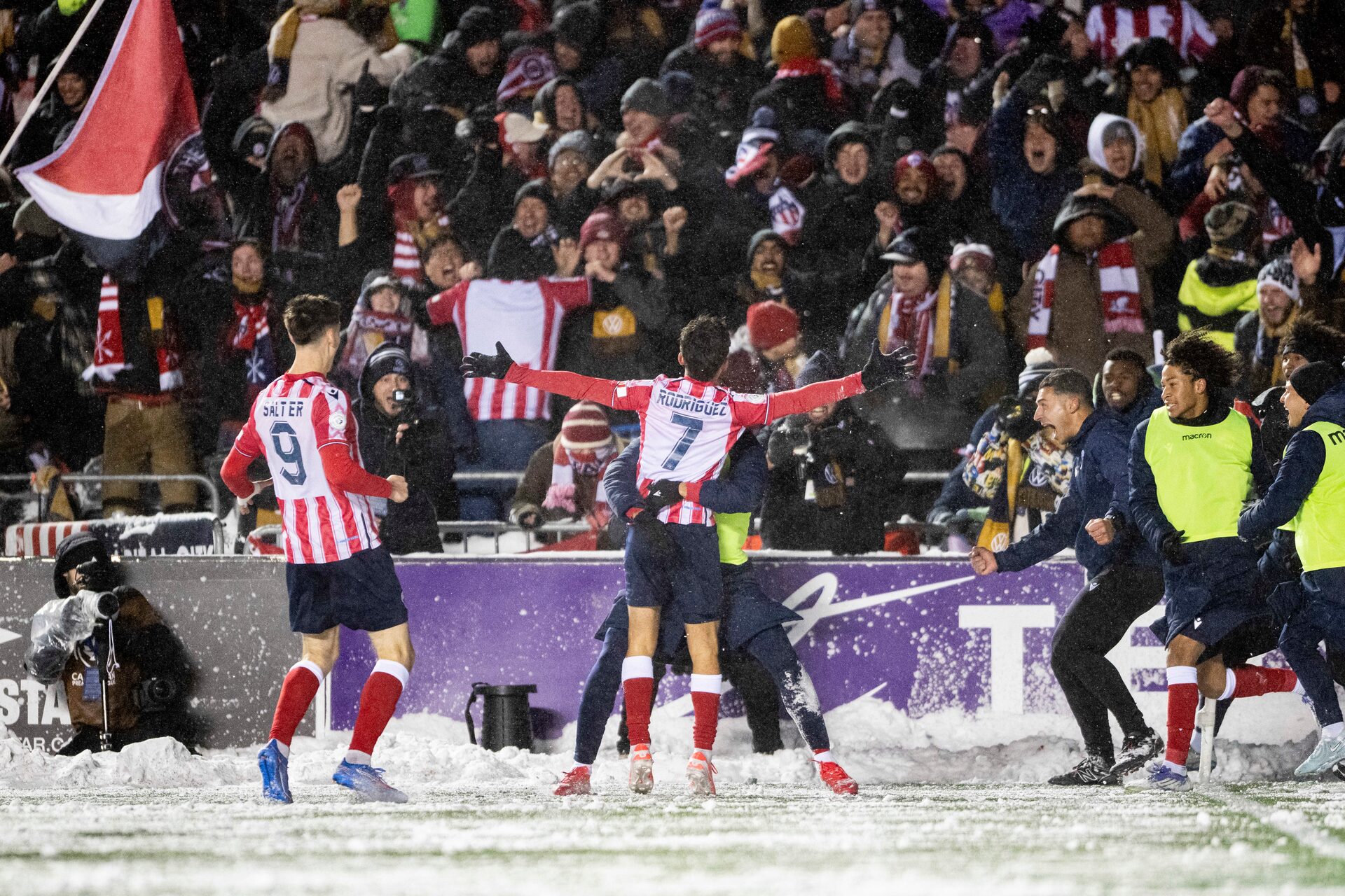 Extra time kicked off at 8:31 p.m. ET. The snow had all but stopped. The teams traded a handful of frantic goal-line chances until Rodriguez stuck a dagger in Cavalry with a slick chip-in in the 107th minute, giving Atlético its first North Star Cup.