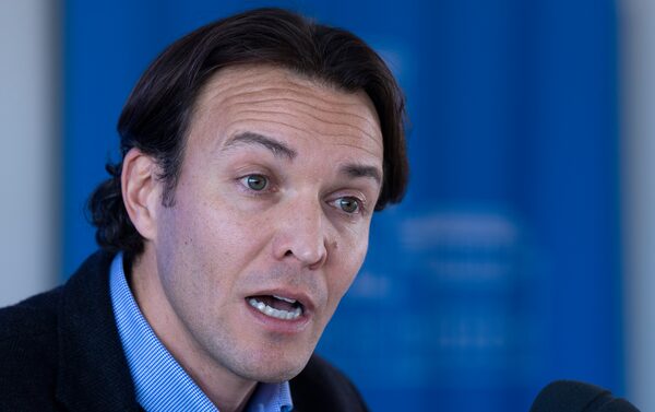 CF Montreal president and CEO Gabriel Gervais listens to a question during a news conference in Montreal on Jan. 10, 2023.Paul Chiasson/The Canadian Press