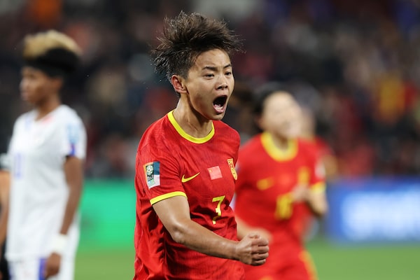 China's Wang Shuang celebrates after scoring a goal during a Women's World Cup match against Haiti, at Hindmarsh Stadium, in Adelaide, Australia, on July 28.Sarah Reed/Getty Images