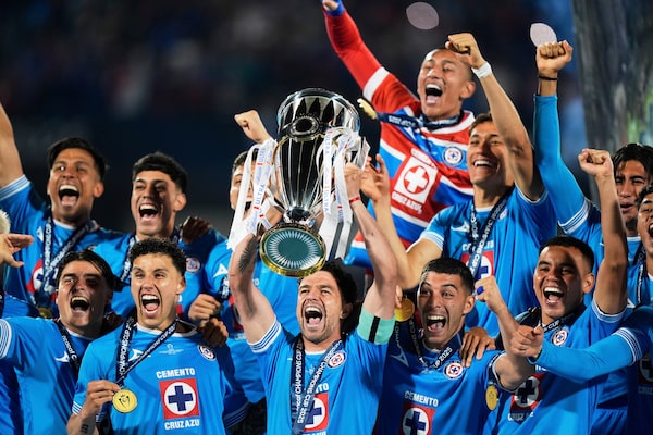 Ignacio Rivero of Mexico's Cruz Azul lifts the trophy after winning the CONCACAF Champions Cup final soccer match against Canada's Vancouver Whitecaps in Mexico City on June 1.Fernando Llano/The Associated Press