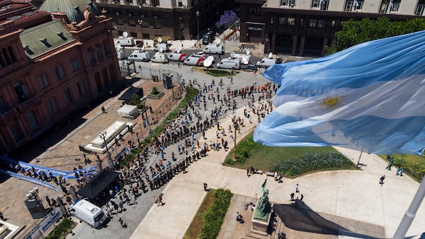 People line up outside the presidential palace in Buenos Aires to pay final respects to Diego Maradona on Nov. 26, 2020.Mario Da Fina/The Associated Press