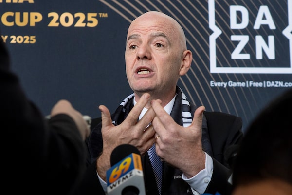 FIFA President Gianni Infantino speaks to the media at a welcoming event for the 2025 FIFA Club World Cup soccer tournament on April 10, 2025, in Philadelphia.Chris Szagola/The Canadian Press