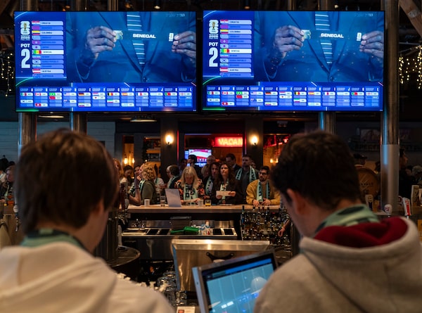 Soccer fans watch the 2026 FIFA World Cup draw at a watch party in Vancouver in December, 2025.Rich Lam/The Canadian Press