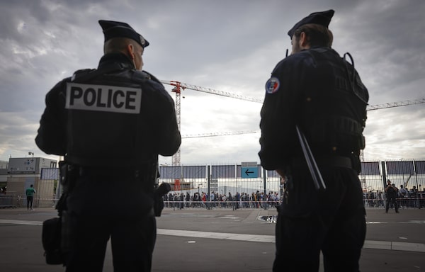 Police officers stand guard ahead the UEFA Nations League soccer match between France and Denmark at the Stade de France in Saint Denis near Paris in 2022.Jean-francois Badias/The Associated Press