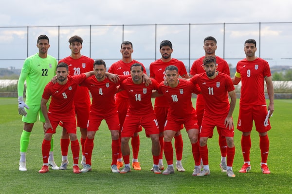Iran's players pose prior to a friendly match against Costa Rica in Antalya, southern Turkey, on Tuesday.Riza Ozel/The Associated Press